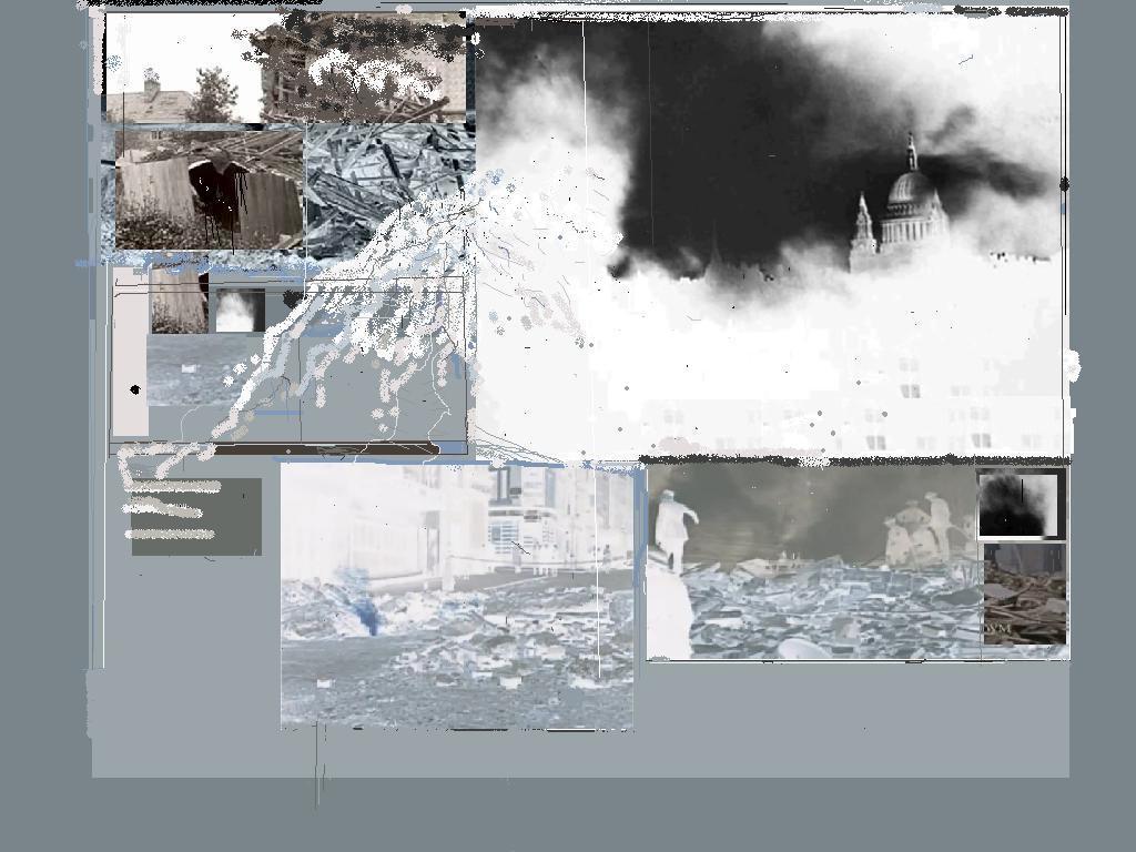 This piece was also created with the Paint program. The lone, almost white figure and the smoke shrouded spire of Saint Paul’s Cathedral are focal points in the compostition. It felt more complete when it was inverted. The border around the piece lends it the feel of a page from an old fashioned photograph album.