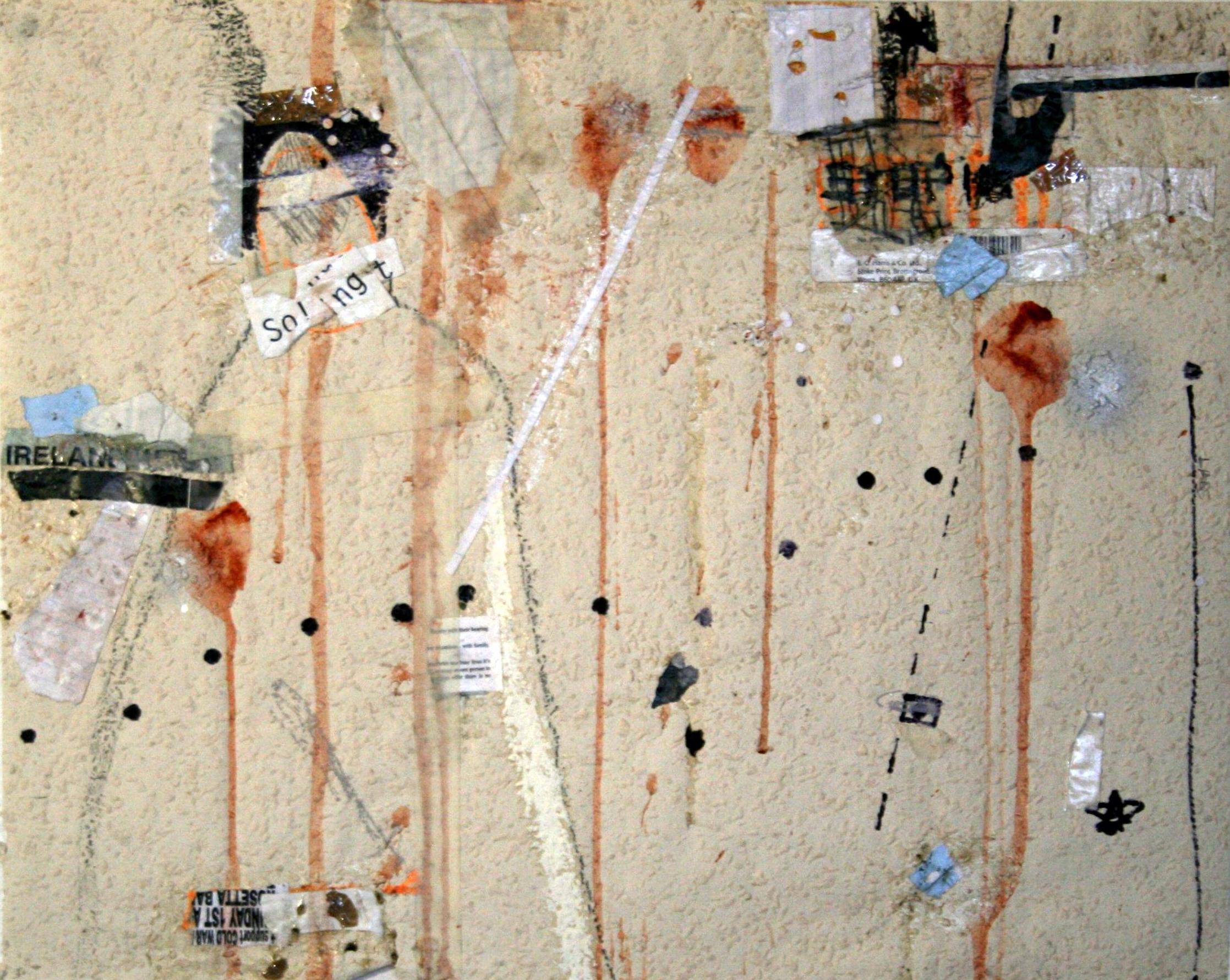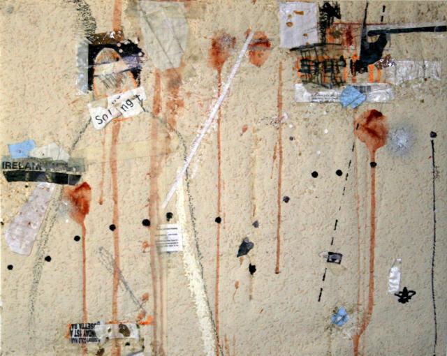 This work is from a series on wood chip wall paper made in 2008. I like the texture and fragility of the surface. The series ended when the roll ran out.