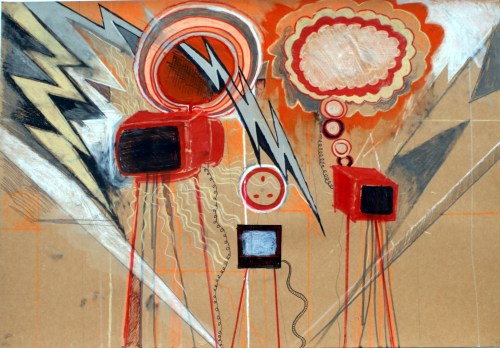 3 TVs graphic style This work is an experiment with a bolder, more graphic drawing style partly inspired by the great Philip Guston