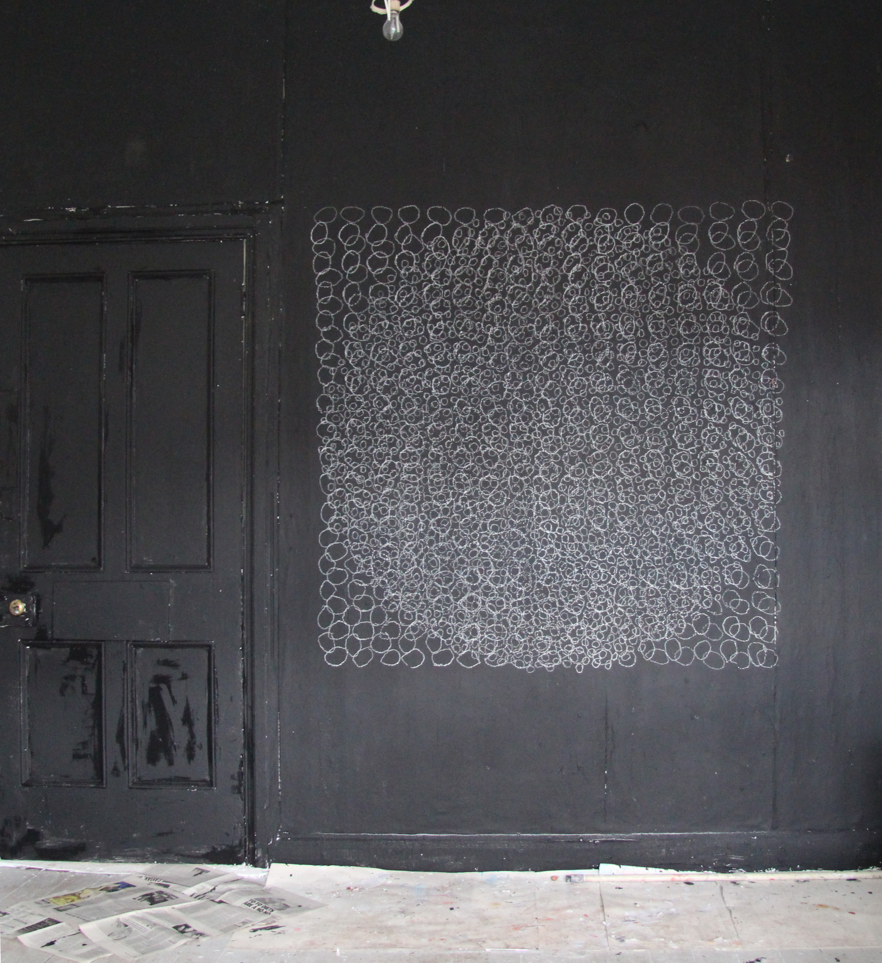 I’m back in my space in Cathedral Studios and I’ve been trying to maintain some kind of creative momentum over the Summer holidays from Art School. Here is one wall drawing at 3 stages of development: