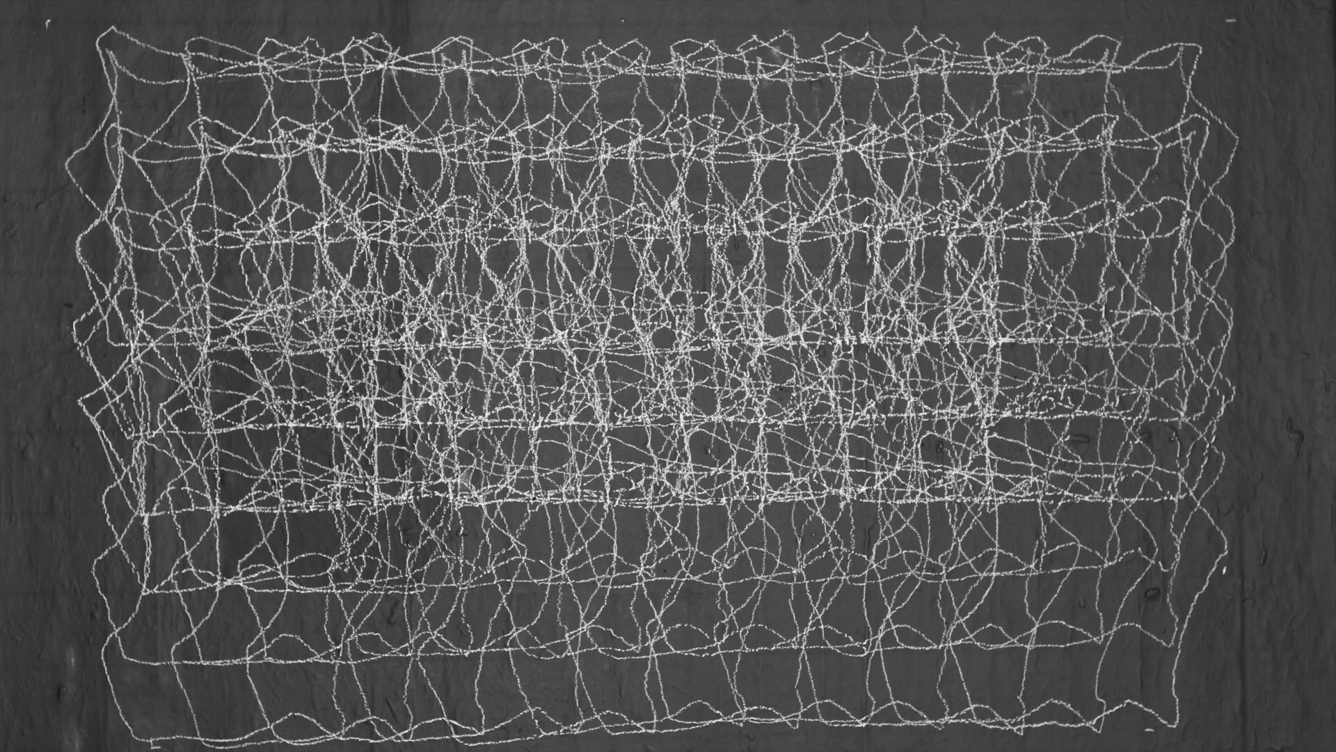 Shown as part of Rule Driven at Platform Arts, this video piece comprises photographs of a shape as it repeats in rows, one shape at a time. The audio component comprises layered percussive sounds and field recordings that include radio static and a washing machine fed through multiple effects. As new layers are added new sounds can be heard. When the drawing reaches the fullest point the process reverses until the wall is left blank once more.