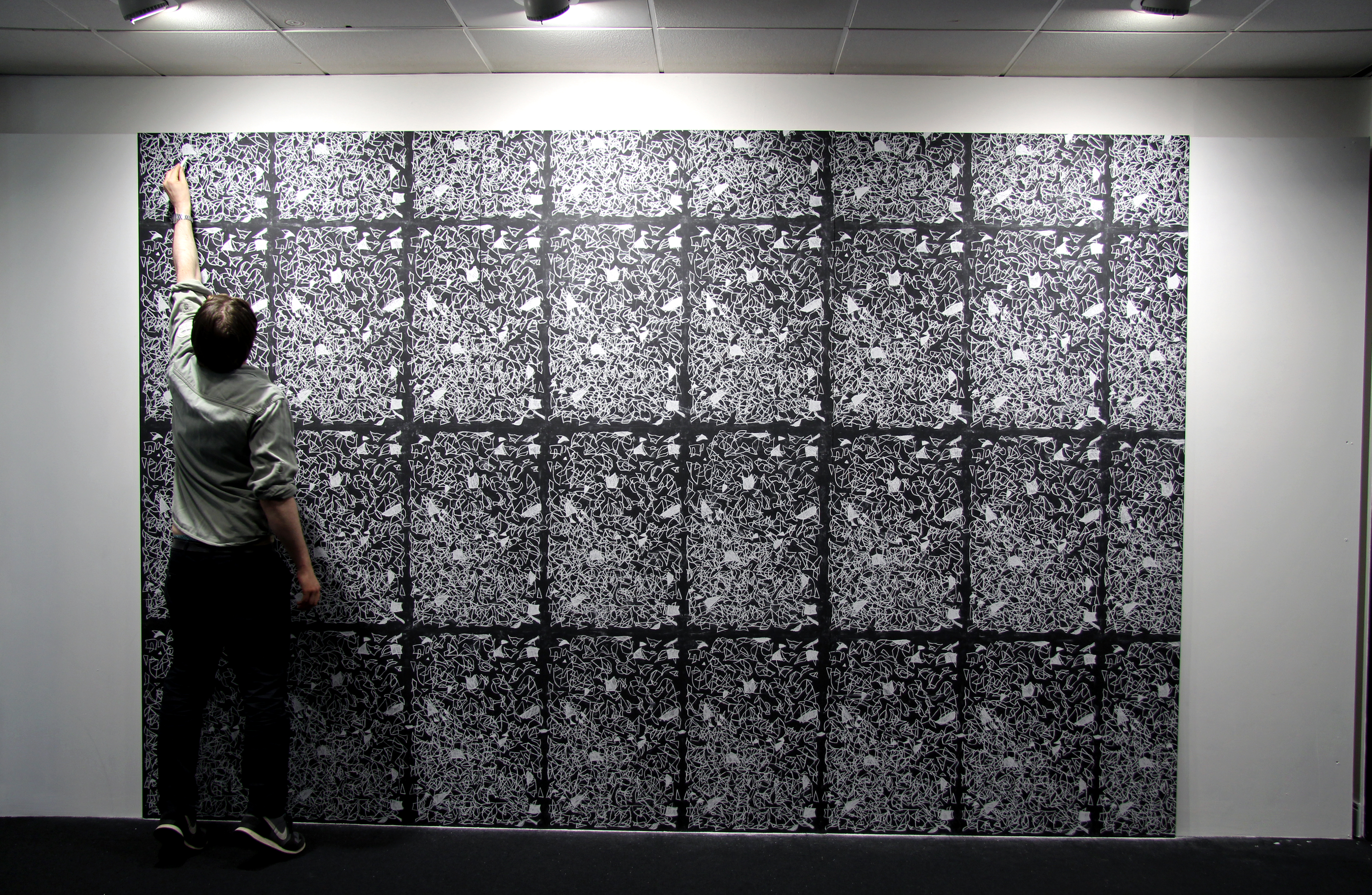Over the duration of ‘Rule Driven’ at Platform Arts Belfast in Connswater Shopping Centre I worked on a large scale chalk drawing to activate the space. Passing shoppers stopped for a look, some were intrigued and asked me to explain what I was doing, others seemed totally bemused.