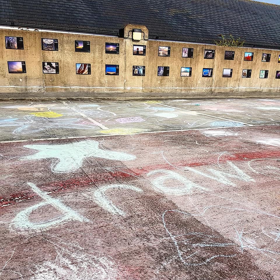 In August I collaborated with Platform Arts, Urban Scale Interventions and Connswater shopping centre to co-facilitate a large-scale community drawing workshop on the roof of the centre’s multi-storey car park with the theme ‘every grain of sand’ referencing how each individual person is unique and has a valuable contribution to make. The drawing was part of ‘Rooftop Summer Recess,’ part of the Eastside Arts Festival 2021 in Belfast.